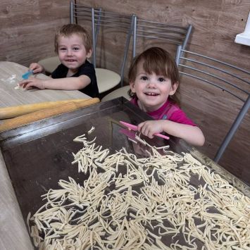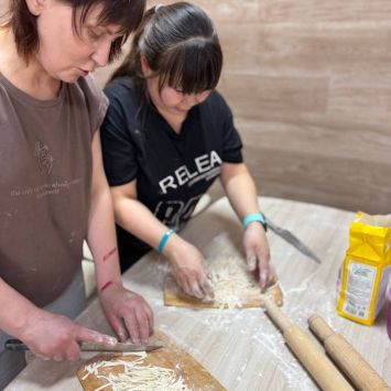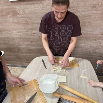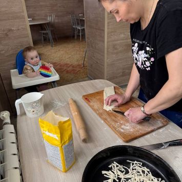 Одна из наших задач – научить женщину готовить. Готовить простые блюда, которые она сможет всегда сделать для своей семьи, не имея под рукой дорогих ингредиентов. В этот раз учились готовить домашнюю лапшу. Всего-то надо: яйцо, мука и немного соли. Зато вкусный суп на курином бульоне с домашней лапшой всегда выручит, когда нужно накормить детей по – быстрому.