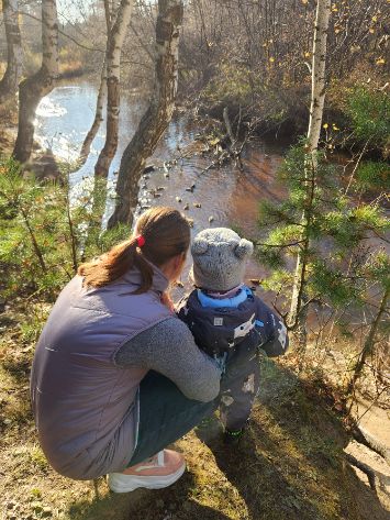 Мама и деткам очень понравилось. Дышали свежим лесным воздухом. Наблюдали за уточками в пруду. Мамы общались со своими детьми, показывали им различные деревья, собирали осенние листья и шишки.